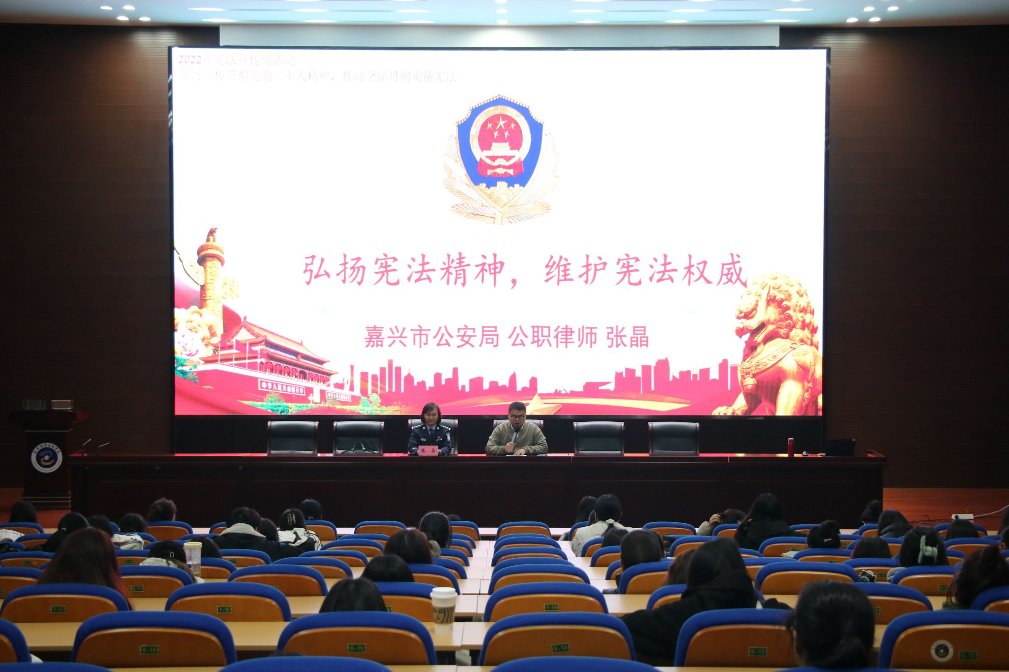 12月5日,學院邀請嘉興市公安局民警、公職律師張晶為同學們作普法教育講座。張晶從憲法起源、我國憲法、憲法伴我們成長、二十大精神與個人成長四個方面展開講座。她表示,《憲法》規(guī)定了國家的基本制度、公民的基本權(quán)利和義務(wù)等重要內(nèi)容,每一位中國公民都必須了解憲法、學習憲法,將憲法根植在心中。法治興則國興,法治強則國強,唯有良法善治,才是民之所向。