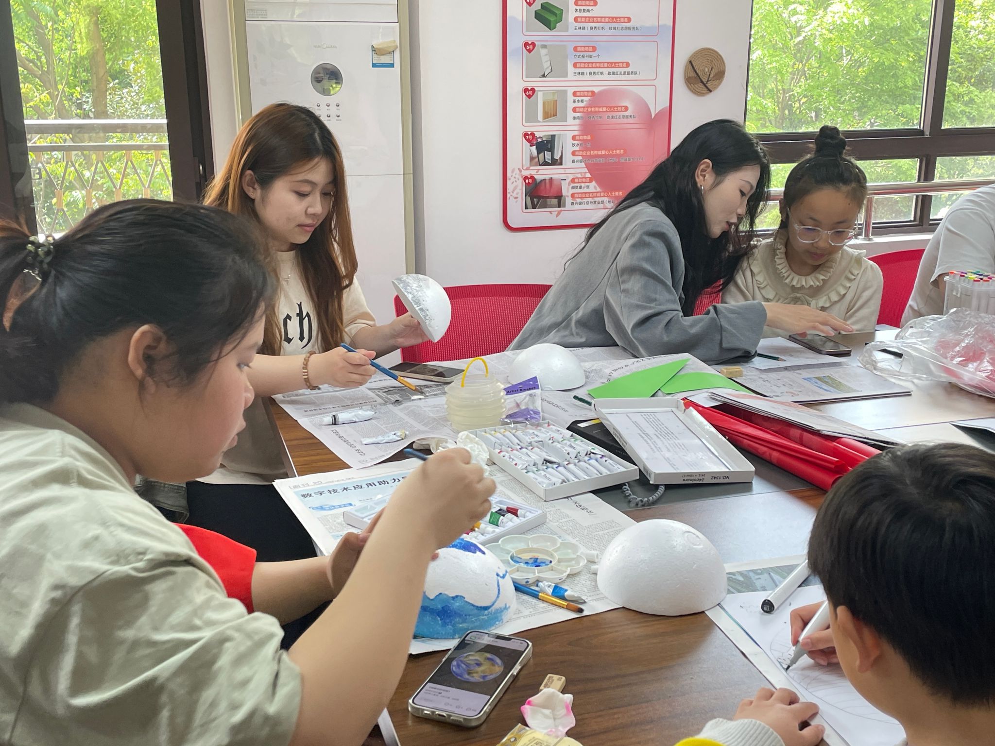 4月17日,志愿服務(wù)隊赴玫瑰恬園社區(qū)開展“眾生的地球”主題彩繪活動,志愿者與社區(qū)兒童共繪“我眼中的地球”,為每一幅畫作賦予保護(hù)自然的深刻內(nèi)涵。非遺文化組志愿者教小朋友們給蛋殼上色,用精細(xì)的工筆刻畫立體地球,鼓勵孩子們提高生態(tài)環(huán)保意識,養(yǎng)成勤儉節(jié)約、綠色低碳的生活方式。