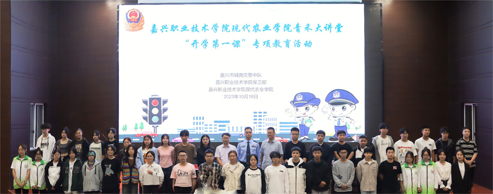 為進(jìn)一步增強(qiáng)學(xué)生交通法治觀念、安全意識(shí),有效預(yù)防和減少交通安全事故的發(fā)生,提高學(xué)生自我保護(hù)能力,10月10日,嘉職院現(xiàn)代農(nóng)業(yè)學(xué)院開(kāi)展青禾交通安全大講堂之“開(kāi)學(xué)第一課”專項(xiàng)教育活動(dòng),聘請(qǐng)城南交警中隊(duì)指導(dǎo)員時(shí)宇杰為學(xué)院交通安全教育外聘輔導(dǎo)員,為青農(nóng)交通安全志愿服務(wù)隊(duì)授旗,為學(xué)生安全教育宣講員頒發(fā)聘書。