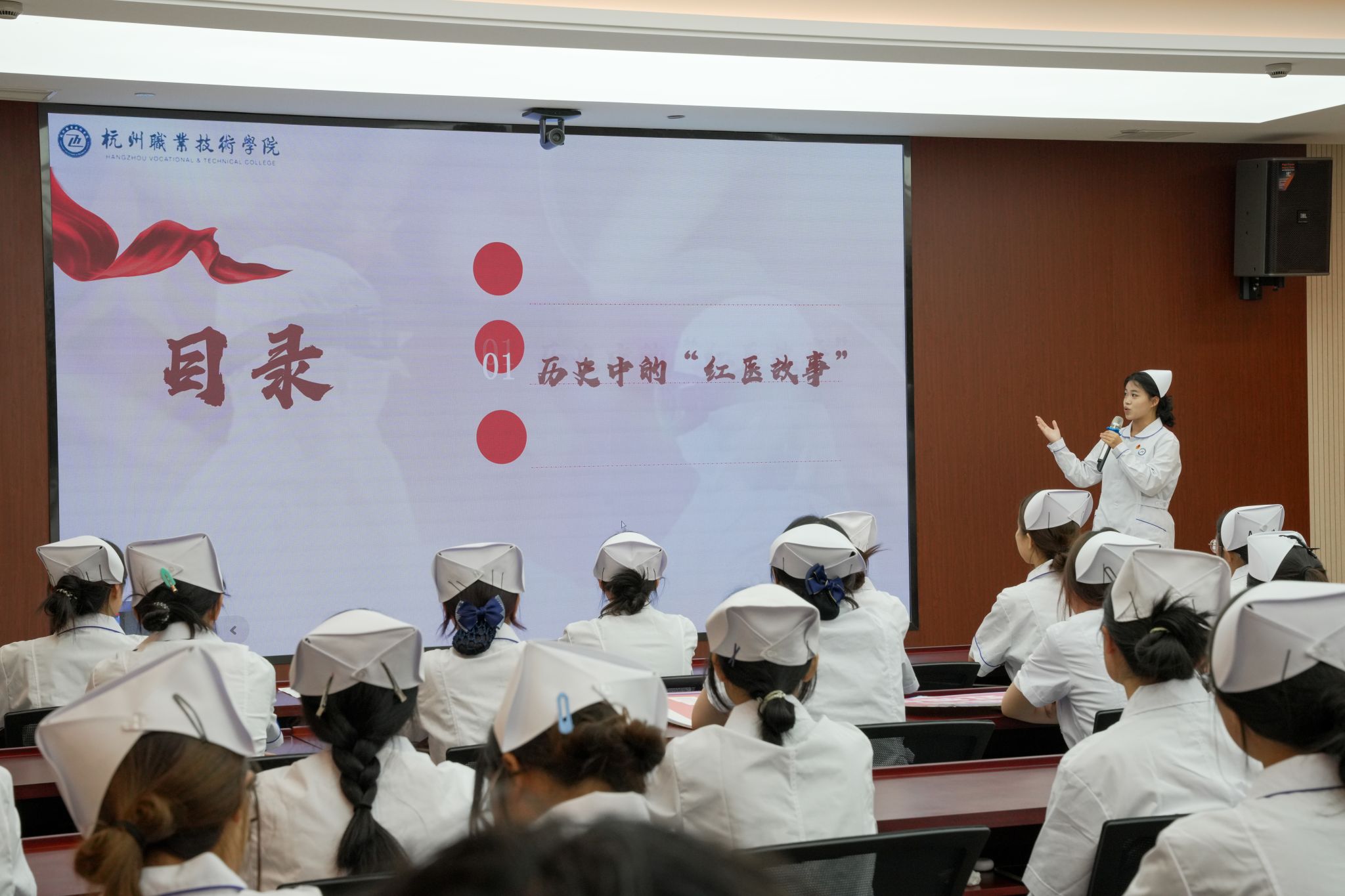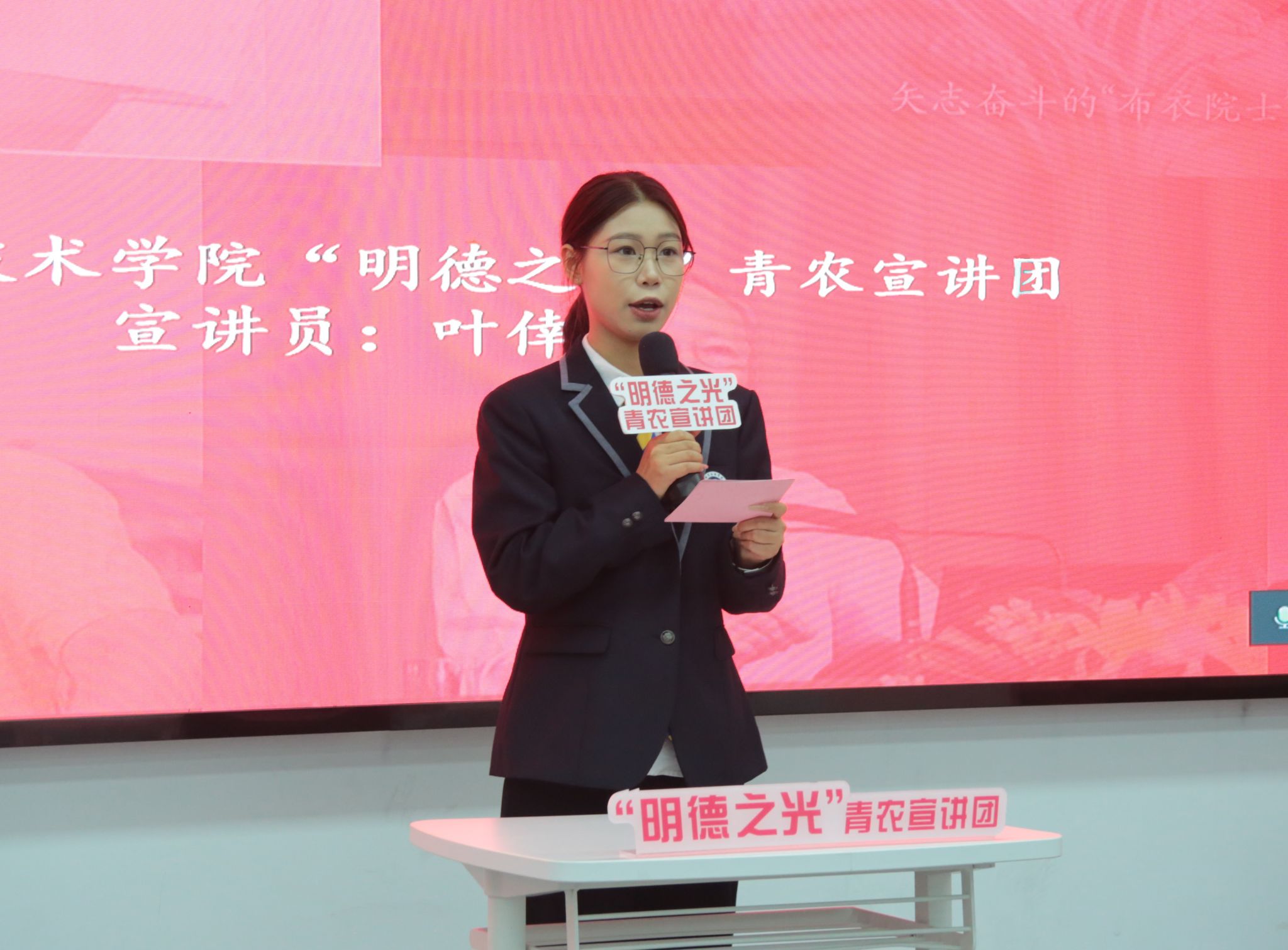 理論宣講環(huán)節(jié),嘉職院“明德之光”青農(nóng)宣講團(tuán)成員葉倖如以《半為儒者半為農(nóng):“布衣院士”的時(shí)代記憶》為題,講述了“布衣院士”盧永根堅(jiān)守理想信念、入黨救國、振興農(nóng)業(yè)、強(qiáng)國富民的一生。新時(shí)代新青年,定將以師為學(xué),以理想者、擔(dān)當(dāng)者、奮斗者的姿態(tài),傳承“盧永根精神”,為鄉(xiāng)村振興和共同富裕注入青年新動(dòng)能。湖職院宣講員施旭慧、杭職院宣講員賈詩琪分別作題為《祖國繁榮昌盛 中華璀璨耀眼》《紅醫(yī)精神:跨越時(shí)空的力量之源》的宣講。