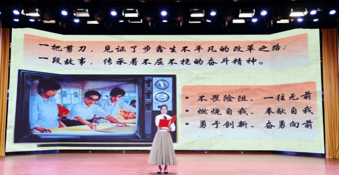 《繡紅旗》《歷史的鐘鳴:巴黎和會下的民族覺醒》《大陳島的時代問答——大陳島之光》《“改革先鋒”布鑫生和“一把剪刀”的故事》……比賽現(xiàn)場,來自全校各二級學院的7支學生參賽隊伍依次上臺表演,有的慷慨激昂、聲情并茂,有的婉轉(zhuǎn)低回、娓娓道來,為現(xiàn)場師生代表帶來了一場視聽盛宴。他們配以歌舞、朗誦、話劇等藝術(shù)形式,深入挖掘具有地域特色的紅色文化資源,圍繞革命人物、革命精神、紅色文物等內(nèi)容,用生動的語言、鮮活的表演、真摯的情感,傾情講述一個個感染人、教育人、鼓舞人、塑造人的紅色故事,再現(xiàn)了那段激情燃燒的崢嶸歲月,充分展示了師生感黨恩、跟黨走的良好精神風貌。精彩的表演深深打動了評委和觀眾,現(xiàn)場不時響起熱烈掌聲。