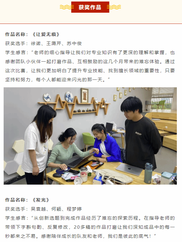 下一步,學(xué)校還將繼續(xù)支持和培養(yǎng)更多學(xué)子在課堂內(nèi)外積極參與文化活動,加強(qiáng)實(shí)踐、創(chuàng)新、合作的精神培養(yǎng),找到文化創(chuàng)意作品落地新方向;驅(qū)動青年教師在提升教學(xué)技能的過程中搭建產(chǎn)教融合與科教融匯新渠道,爭取在各類技能競賽中再創(chuàng)佳績。
