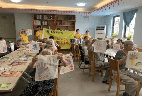 圖:大手與小手養(yǎng)老院帆布包繪制現(xiàn)場 龍予宸攝