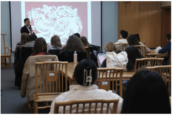 許永明詳細(xì)介紹了剪紙的歷史起源和發(fā)展,以及剪紙?jiān)诓煌赜虺尸F(xiàn)的風(fēng)格特色,如河北剪紙的主要特色為染色,內(nèi)蒙古剪紙的圖案則常包含作者豪放的情感等,通過對(duì)各個(gè)地區(qū)剪紙作品的講解,留學(xué)生們也深切感受到了中國(guó)各地獨(dú)特的文化底蘊(yùn)。