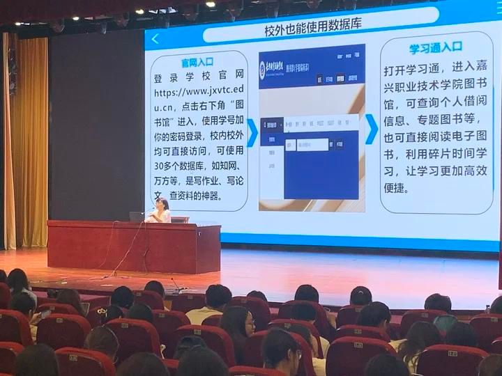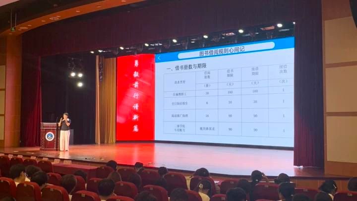 講座中,教師化身 “圖書館向?qū)А保敿?xì)介紹了 1.4 萬平方米館舍的 “尋寶地圖”—— 24 小時開放、免借閱手續(xù)的一樓悅讀空間,藏有自然科學(xué)類圖書的 216 借閱室,收錄語言文學(xué)類的316借閱室以及收錄偉人著作、歷史地理類書籍的 416 借閱室……并貼心提醒大家“注意事項(xiàng)”:全日制在校生一次可借 6 本書、期限30天,續(xù)借能再延長30天;自助借還機(jī)操作只需3步,取書不借記得放回還書車;校外想查數(shù)據(jù)庫,登錄學(xué)校官網(wǎng)就能隨時“薅資源”。