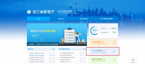進(jìn)入網(wǎng)站首頁后,點擊畢業(yè)生調(diào)查入口進(jìn)入入口頁面。