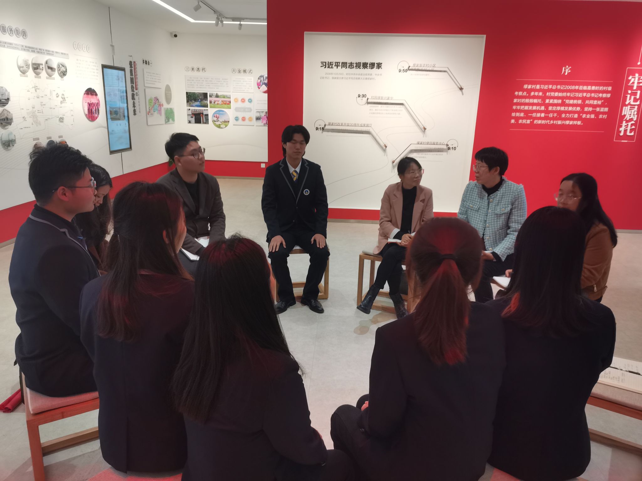 在繆家村史館研習(xí)小組村委會紀(jì)委書記、組織委員朱馮玲等村干部一起開展了“黨建統(tǒng)領(lǐng)鄉(xiāng)村振興的生動實踐”的走親”交流,為推動鄉(xiāng)村振興和共同富裕貢獻(xiàn)智慧和力量,現(xiàn)場村干部、師生相互就旅游鄉(xiāng)村可持續(xù)發(fā)展、研學(xué)旅行線路開發(fā)、旅游文創(chuàng)產(chǎn)品研發(fā)談感受、談想法,氛圍濃厚,討論熱烈