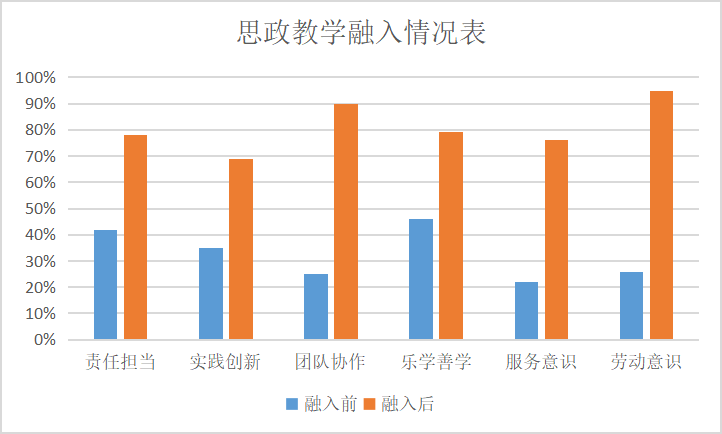 通過融入課程思政元素于教學(xué)手段中后,課程團(tuán)隊(duì)從責(zé)任擔(dān)當(dāng)、實(shí)踐創(chuàng)新、團(tuán)隊(duì)協(xié)作、樂學(xué)善學(xué)、服務(wù)意識、勞動意識六個(gè)方面分別對學(xué)生進(jìn)行了考察。根據(jù)課前組織的案例視頻搜集,課中的生生評價(jià)、師生評價(jià)、企業(yè)導(dǎo)師評價(jià)以及課后的問卷星測試成績多方面反饋,學(xué)生的各方面素質(zhì)及技能都得到了大幅度的提高。其中,城軌專業(yè)的學(xué)生在勞動意識方面提升非常明顯,課程思政元素融入前大部分學(xué)生都處于“被動勞動”狀態(tài),只有教師督促了才開始進(jìn)行勞動,僅有26%學(xué)生愿意主動參與勞動。融入課程思政于教學(xué)中后,95%學(xué)生愿意參與主動勞動,班級勞動氛圍良好。學(xué)生具體提升情況如下表所示: