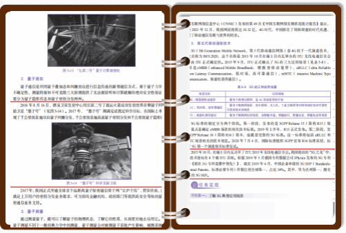 模塊五在介紹量子通信發(fā)展時,重點介紹了“墨子號”衛(wèi)星和“京滬干線”的建成,在介紹5G通信技術(shù)時,重點介紹我國在5G移動通信領(lǐng)域的快速發(fā)展和卓越貢獻(xiàn),讓學(xué)生了解該技術(shù)發(fā)展現(xiàn)狀的同時,啟發(fā)學(xué)生的創(chuàng)新意識,點燃學(xué)生的愛國激情,激發(fā)學(xué)生建設(shè)數(shù)字強(qiáng)國的自信心和使命擔(dān)當(dāng)。圖4為模塊五“信息新技術(shù)”部分節(jié)選。