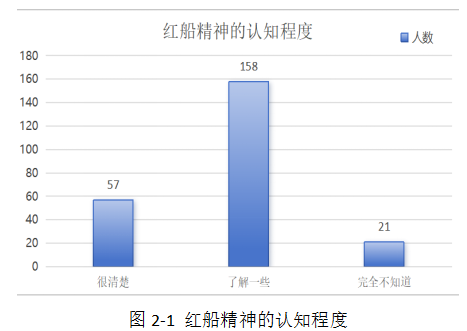 針對紅船精神的認(rèn)知程度這個維度分析,很清楚紅船精神有57人占比24.1%,了解一些紅船精神有158人占比66.9%,完全不知道紅船精神有21人占比9%。調(diào)查結(jié)果顯示,大部分大學(xué)生對紅船精神有一定的了解,但仍有近十分之一的學(xué)生對此一無所知。如圖2-1所示。