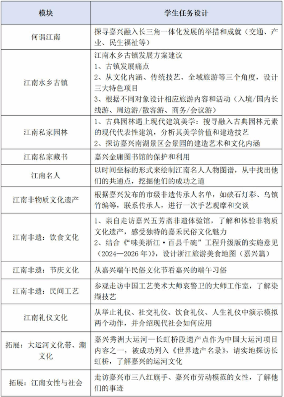 為落實課程“三進”政策,結(jié)合浙江文旅強省發(fā)展戰(zhàn)略,對標嘉興旅游業(yè)“十四五”規(guī)劃,《江南水鄉(xiāng)文化》課程已完成模塊和內(nèi)容的重建與更新,教學(xué)內(nèi)容完成“三新”改革,融入最新旅游熱點、最新旅游政策意見、最新開發(fā)的地域文化項目和資源。課程已立項校級課改項目,下一步將聯(lián)合南湖文旅集團、翠明假日旅行社等嘉興旅游行業(yè)頭部企業(yè),以行業(yè)標準為指引,聯(lián)合推進“活頁式、工作手冊式”新型教材的開發(fā),同時創(chuàng)設(shè)一批可推廣的水鄉(xiāng)文化實踐實訓(xùn)項目。