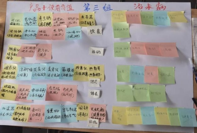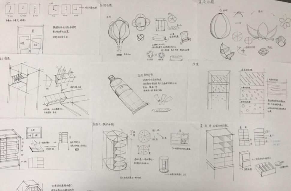 如果說(shuō)前四階段為設(shè)計(jì)前期,那么從第五階段開始就進(jìn)入一個(gè)新的階段,也是更“設(shè)計(jì)”的階段。此前各組的選題和設(shè)計(jì)定義已經(jīng)明確,產(chǎn)品概念是在設(shè)計(jì)定義基礎(chǔ)上具象化的拓展,如果設(shè)計(jì)研究階段主要依賴認(rèn)知力和洞察,概念設(shè)計(jì)階段主要依賴想象力和創(chuàng)意。為此,課堂上和課后,安排了多輪次的頭腦風(fēng)暴、草圖構(gòu)思,小組討論等練習(xí)。當(dāng)然,設(shè)計(jì)定義、設(shè)計(jì)愿景、設(shè)計(jì)構(gòu)思、設(shè)計(jì)概念等環(huán)節(jié),并不是截然分開的,而是相互穿插在一起,有反復(fù)的情況也很正常。也就是說(shuō),通過(guò)設(shè)計(jì)構(gòu)思和設(shè)計(jì)概念的拓展,也會(huì)適當(dāng)調(diào)整設(shè)計(jì)定義。