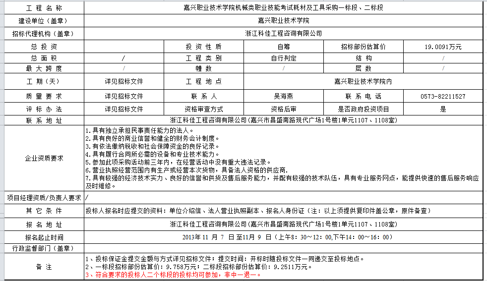嘉興職業(yè)技術(shù)學(xué)院機(jī)械類職業(yè)技能考試工具采購(gòu)信息發(fā)布表