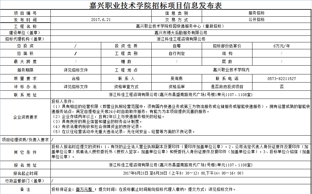 嘉興職業(yè)技術(shù)學(xué)院校園快遞服務(wù)中心招標(biāo)公告