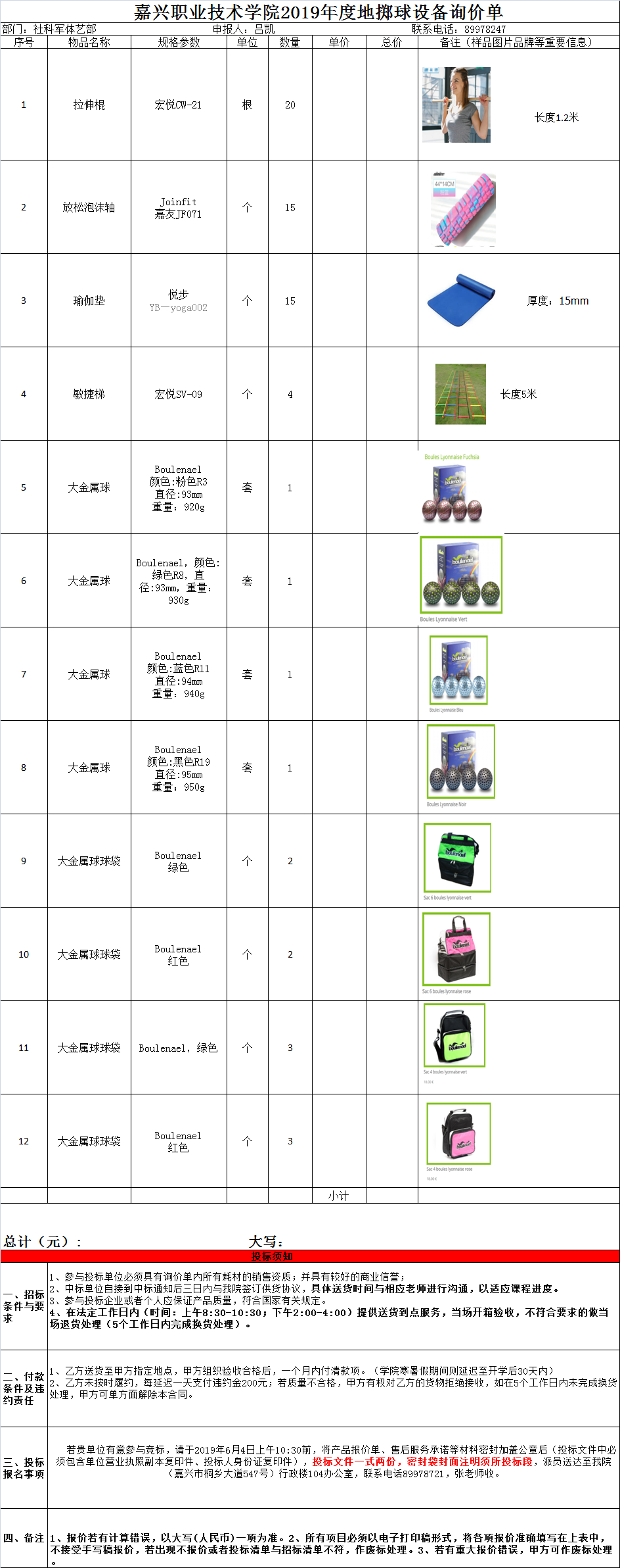 詢價單點擊下載:嘉興職業(yè)技術學院2019年度地擲球設備詢價單.xls